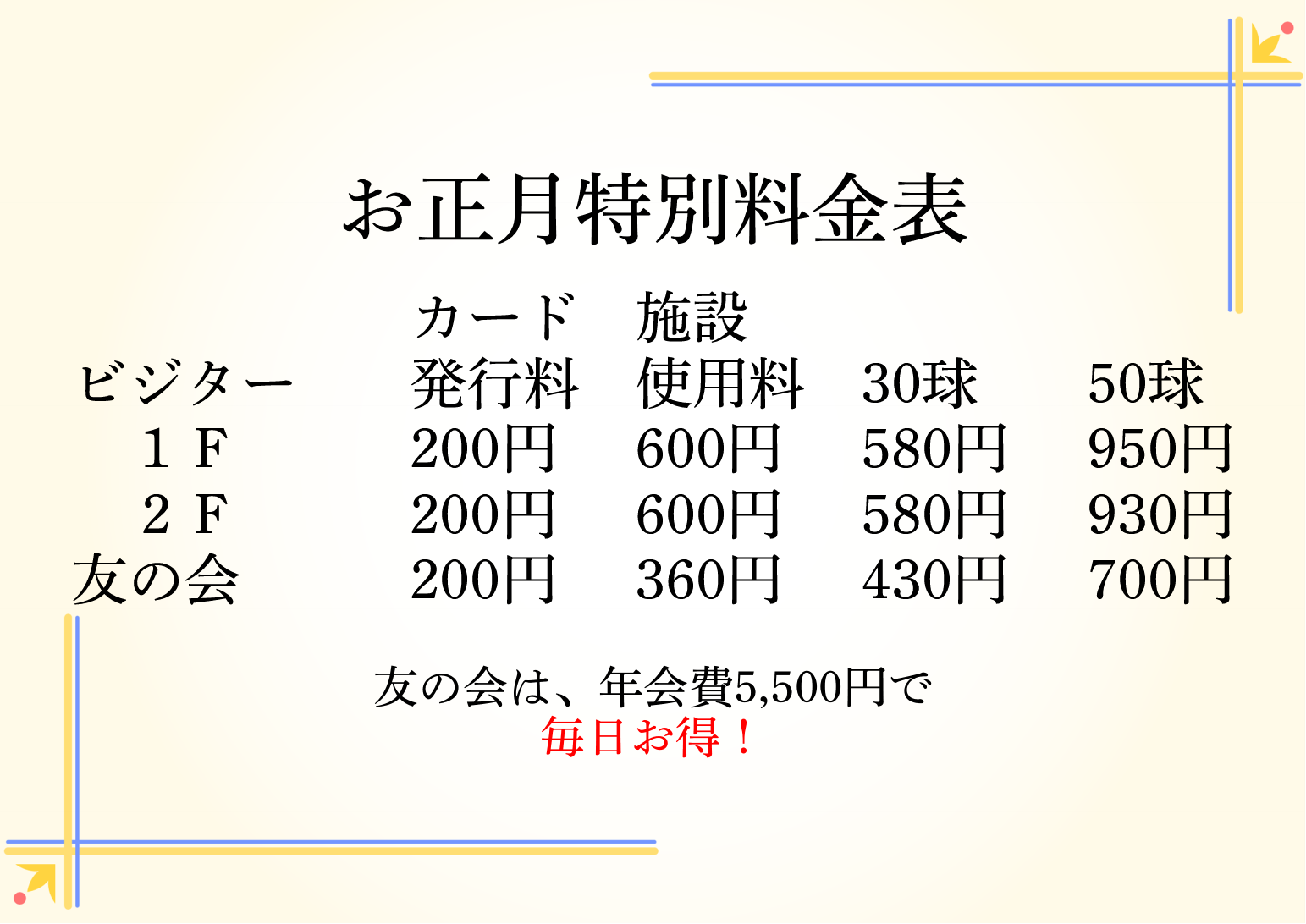終日特別料金です(1月2日〜1月4日)